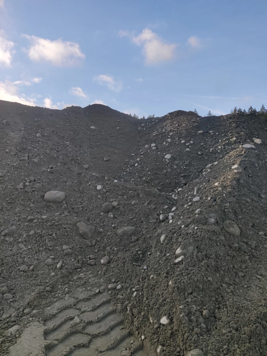 Dug from the wall of the gravel pit, this is a clean (no organics) raw aggregate that contains sand, gravel and round rock up to about 10″. Not a screened or classified product (ie you get what you get...) that is excellent for building up large areas required for further contruction purposes. Contains few, if any fractured rock.