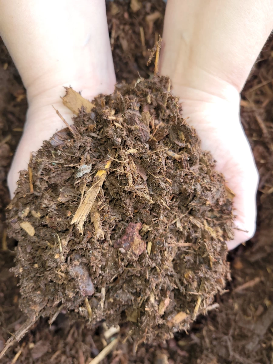 Often used by landscapers in the know, this mulch is a fir/hemlock blend produced by us. It is dark tan/brown with some lighter tan highlights.