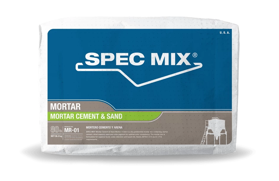 SPEC MIX® Masonry Cement & Sand mortar is a dry preblended mortar mix containing masonry cement and dried masonry sand formulated for superior bond, water retention and board life. SPEC MIX Masonry Cement & Sand mortar is available in color and is engineered for the installation of CMU, and brick applications where high mortar workability and board life is required for good bond.