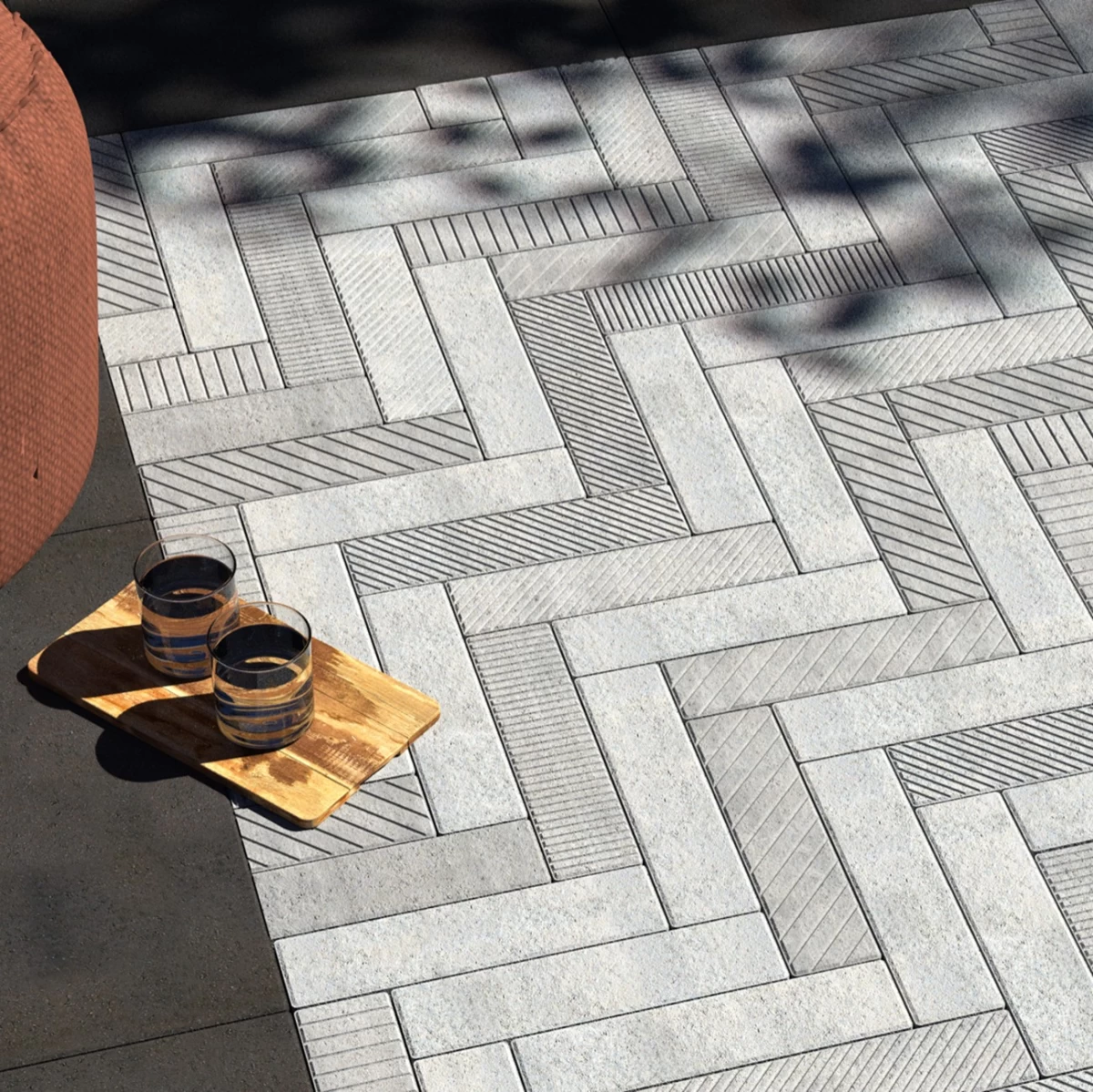 The plank shape and hand-tooled face of the Empire pavers are enriched by DuraFusion Technology for enhanced texture and wear resistance with seven distinct face styles for unique pattern creation.