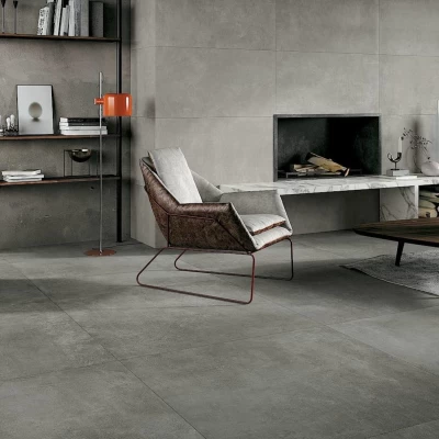 The power of concrete lies in the fact that it is a neutral, exceptionally versatile furnishing material, and in its ability to embody the whole material identity of the ceramic product, transforming it into a container able to bring out the very best in all types of finishes and furnishing elements. Mirage Glocal has fully exploited this characteristic feature of spattled cement, coming up with a light, delicate collection with clean-cut, yet profound textures reminiscent of the material in its most typically original guise, enhanced by a careful selection of subtle details.