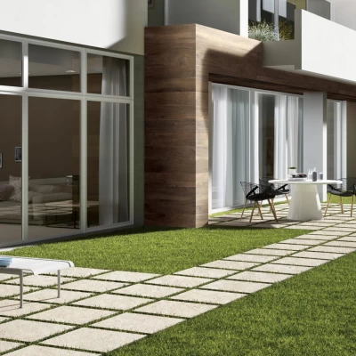 The Project Collection is a cement look porcelain tile that creates a sophisticated, industrial look. Porcelain is lighter than concrete or natural stone pavers, making installation more manageable. It is also an extremely hard and tough material, resistant to most heavy impacts, making it suitable for high-traffic areas and even industrial sites with heavy equipment. Porcelain can last decades if properly installed, providing beauty and functionality that lasts. Porcelain pavers are also extremely frost resistant, improving the safety of walkways in cold weather.