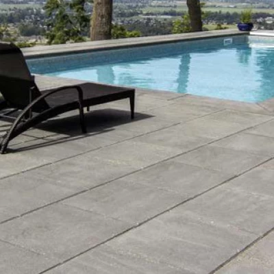 Texada HydraPressed Slabs have a light shot-blast “architectural finish” producing subtle colors with a distinctive elegant appearance. HydraPressed Slabs are made to precision sizes with true edges that fit together tightly. Top edges are chamfered for a neat appearance. HydraPressed Slabs are hydraulically pressed using an advanced method of producing concrete paving that requires 400 tons of hydraulic pressure, resulting in a cured slab with incredible strength and durability.