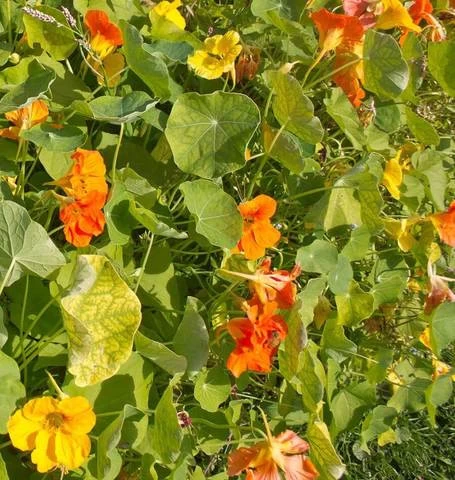 This is an easy-to-grow compact nasturtium for gardens and planters. Jewel Mix produces colourful double blooms of light yellow, orange and deep red. A hardy annual, Jewel Mix will flower all summer long in full sun or partial shade. The bright flowers produced by Jewel Mix nasturtium seeds are held well above the foliage for an impressive colour display. Even before the plants bloom, the foliage is very decorative. The edible flowers can be torn over salads to add colour to summer meals. Try freezing some torn Nasturtium flowers in ice cubes for fancy drinks. Jewel Mix Nasturtium seeds can be planted in window boxes, hanging baskets or raised beds, and grow to a height of 40cm (16"). Suitable for xeriscaping.