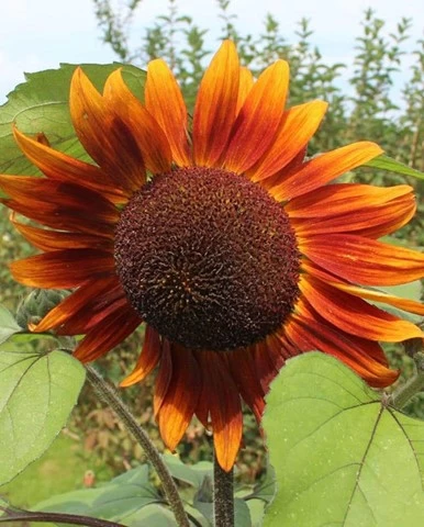 Rich copper red petals are highlighted with golden yellow around a nearly black central disc. Plant Velvet Queen sunflower seeds for 1.5m (5') tall plants with simply gorgeous blooms around 13cm (5") wide.