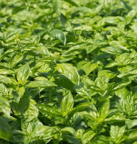 CERTIFIED ORGANIC! This vigorous basil variety produces large, mid-green leaves all summer long. Keep picking the growing tips and the 2 pairs of leaves below them for the kitchen. More branches will sprout producing more leaves. This large-leaved Italian type is the preferred variety for traditional pesto recipes. Plant several times for a continuous supply until frost. Grow some organic sweet basil in a pot on a warm and sunny windowsill, and harvest fresh leaves right through the winter. Basil is a heat-loving plant so wait until the soil has warmed up before planting. Basil seeds may take several weeks to germinate, so be patient. Bottom heat speeds germination.