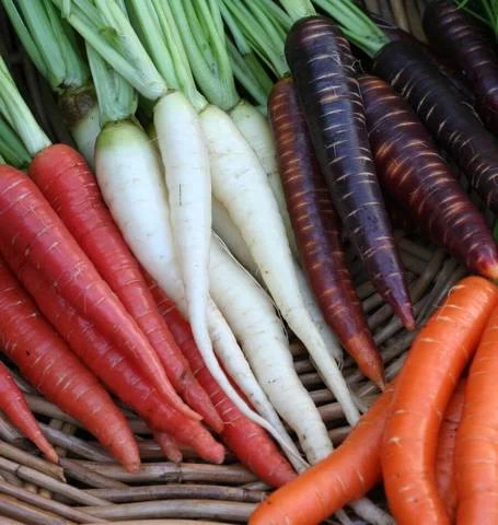 Enjoy the diversity that carrots can bring to the garden. Plant Rainbow Blend carrot seeds to grow purple, white, red, and nice big orange carrots all in the same row. Get the most out of this collection by sowing as evenly as possible to reduce thinning and waste. Repeat sowings will provide a polychromatic carrot bounty from late spring to winter. Kids will love the variety of colours - and flavours.