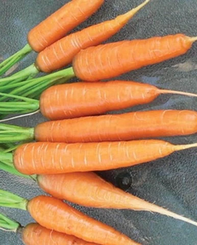 This carrot has been grown and selected for North American conditions for at least 50 years, and is a workhorse variety that is widely adapted and often out-performs some of the more finicky nantes hybrids.
