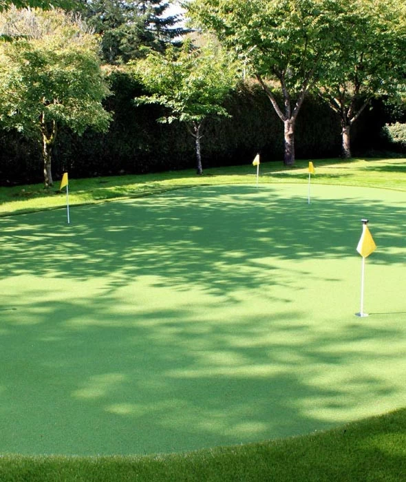 Country Club was developed to mimic a natural putting green surface in both appearance and performance, while keeping your budget in mind. Country Club has a two-tone polyethylene putting surface made up of field and olive green. This color combination gives it a healthy, lush and natural appearance similar to that of a golf resort. Sold in 13' wide rolls only, length cut to order.