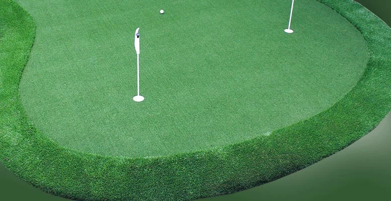 This is the classic kidney shaped putting surface that is so popular with our customers. Everything you need to create a smaller surface putting green with fringe, and all the trimmings! Kit is also available without fringe (item #20684) — please call for more information. See Sharecost for the required gravel and sands you'll need for the base materials under the putting green.