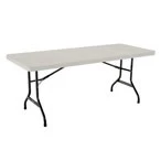 Our 6-foot (72″ × 30″) folding tables are constructed of high-density polyethylene and are stronger, lighter and more durable than wood. For indoor or outdoor use, built for the rigors of demanding commercial use. Stain-resistant and easy to clean.