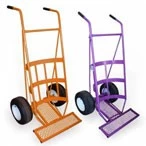 We have two heavy-duty dollies for rental – our purple dolly (“Wilma”) has a 1200 lb. capacity, while the larger orange dolly (“Fred”) can carry up to 1600 lbs.