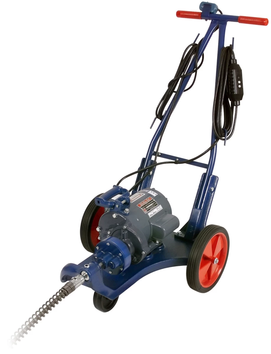 The “Model C” Electric Eel runs up to 80′ of 1-1/4″ self-feeding cable (broken down into 8′ sections); destroys major clogs in 3″-10″ drains.